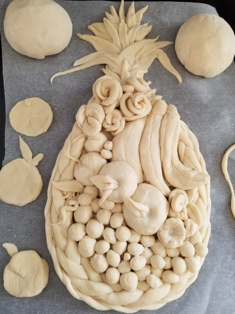 I think the shine of the egg wash reflecting on the camera lens is doing the fruit basket a disservice because it was really awesome looking. And this is something that I will definitely be trying more of because it was really fun rolling and shaping bread dough like I was in Kindergarten.