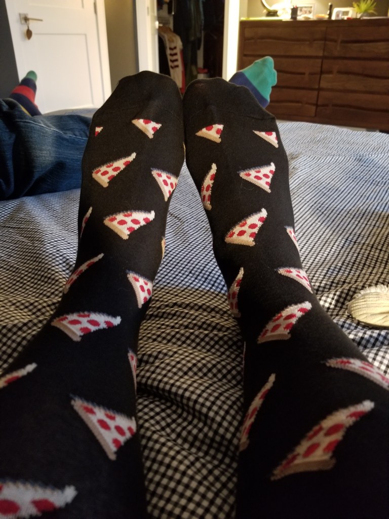 For those that don’t know about Gift Wars, my cousin Angie from Ontario (CAFO for short) and I have been exchanged in a gift giving war since around the beginning of all the pandemic nonsense. Most recently, I received a wonderful package which included PIZZA THEMED GIFTS.