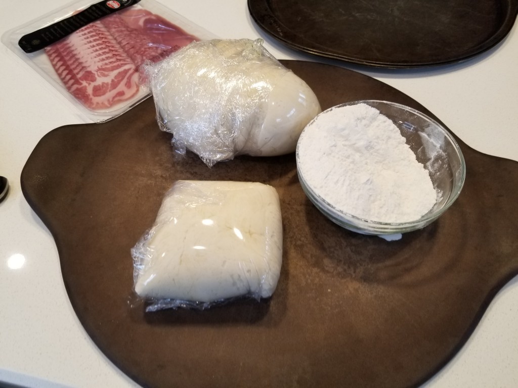 After your dough baby is done growing, give him a second round of kneading for about 5 minutes. Again, wrap your dough in more plastic wrap and leave to rest for about 30 to 45 minutes. The dough will grow a little bit more in this time, so don’t be surprised when your plastic wrap expands.