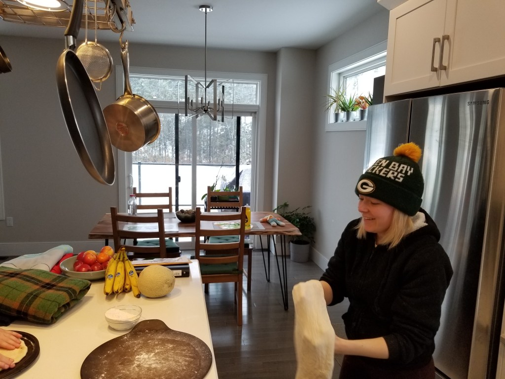 When you are ready to try dough wheeling, make sure you use your fists. Fingers will poke through the thin dough and you’ll ruin everything.